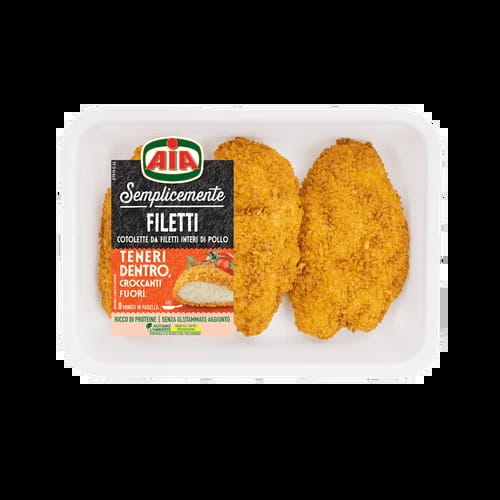 Die Panade, zubereitet mit frischen AIA-Eiern und ausgewähltem Brot, verleiht diesem Hähnchenschnitzel Geschmack und eine kräftige Konsistenz. Im Retail-Umkarton verpackt. Genießen Sie das Mailänder Schnitzel von AIA: