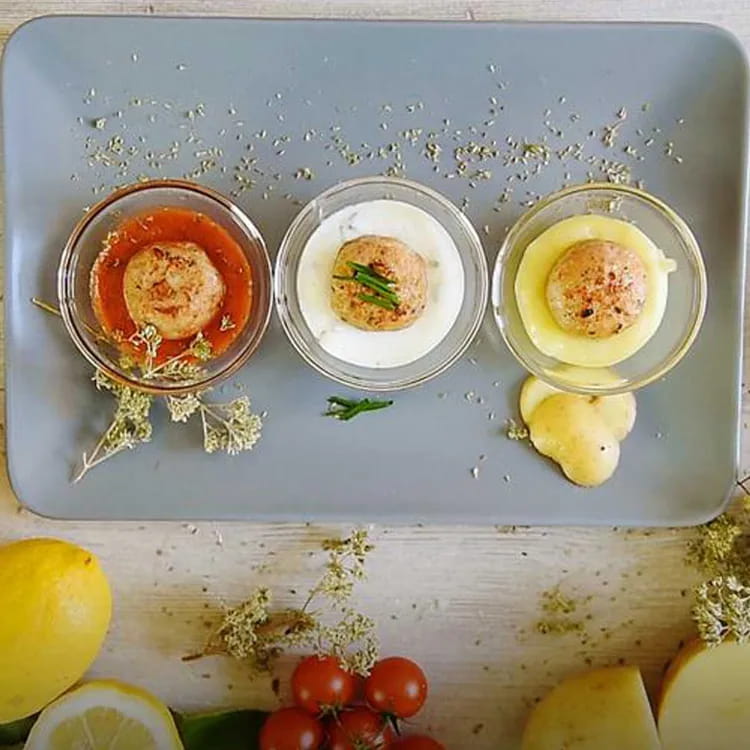 Serve the chicken and cheese croquettes 5 minutes after taking them out of the oven.