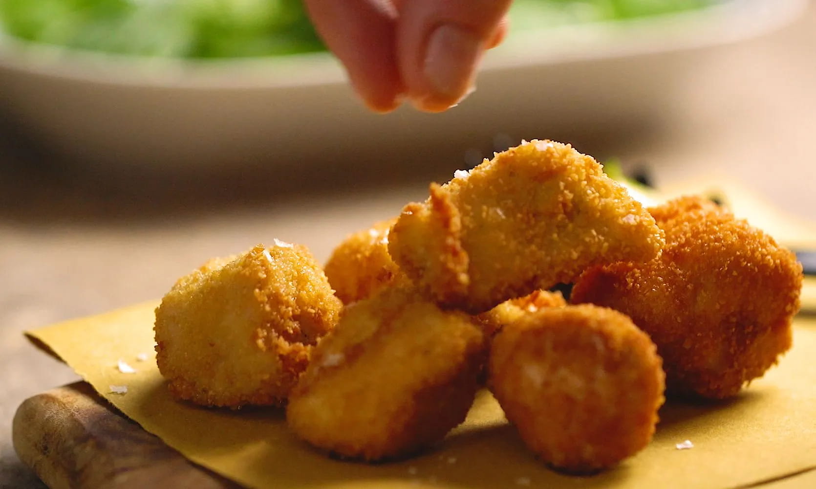 AIA suggests them with a delicate Jerusalem artichoke mayonnaise, for a light and delicate touch, but you can also accompany them with a good homemade mayonnaise, with a ketchup delicate, with a strong bbq sauce or with a very fresh yogurt sauce.