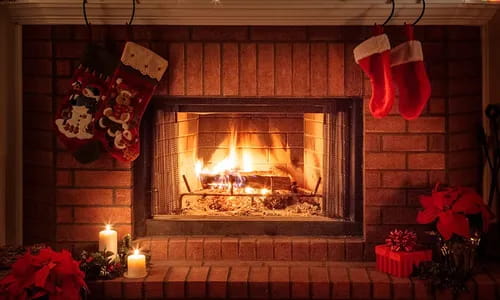 A - Un camino acceso in un salotto rustico