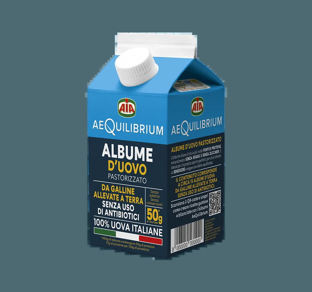 L'albume AeQuilibrium, in un comodo brick dotato di tappo, proviene da uova sgusciate e delicatamente pastorizzate per garantire la massima qualità e sicurezza, senza aggiunta di additivi e senza conservanti.