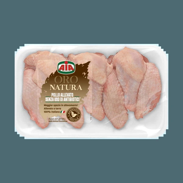 Sfiziose e delicatissime ali di pollo allevato a terra pronte da cucinare.