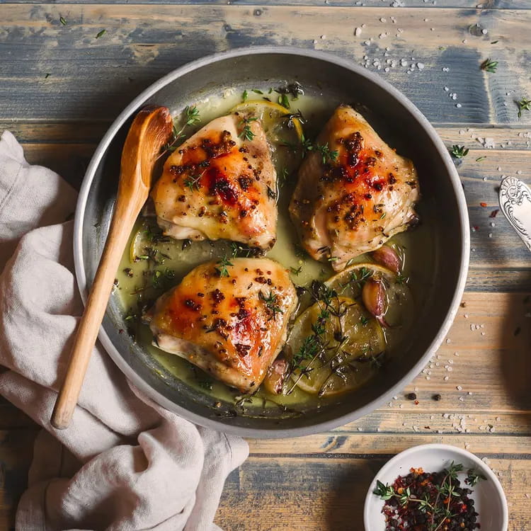 Preparate le sovracosce di pollo senza pelle, con osso cotte in una casseruola, in padella o al forno, condendole con un filo di olio e un pizzico di sale e pepe.