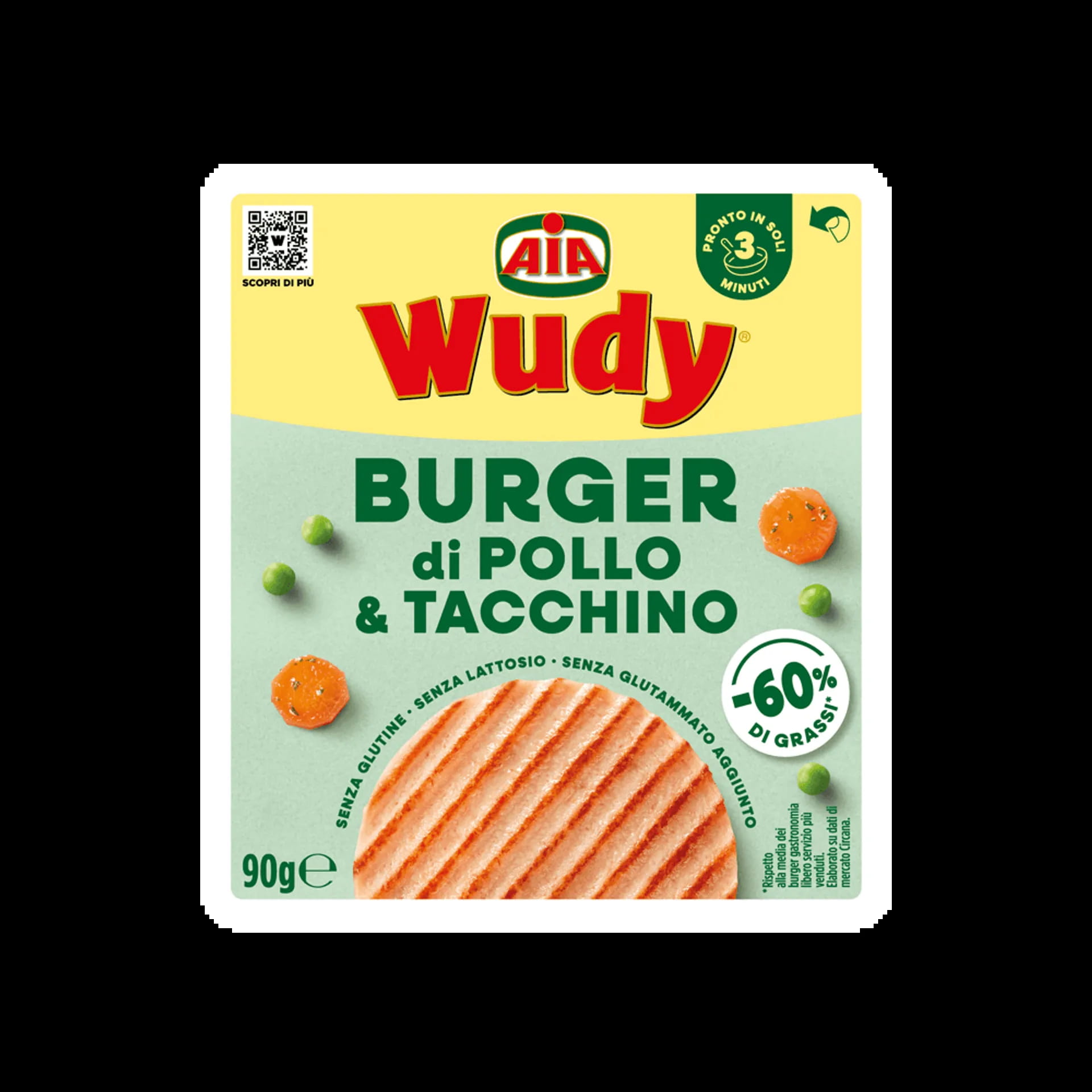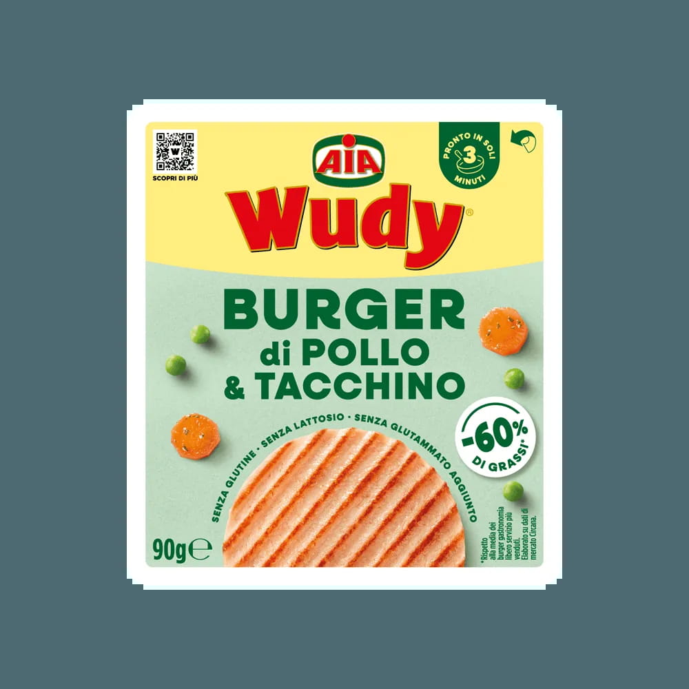 Il gusto unico e inconfondibile di Wudy in un Burger con il 60% di grassi in meno*. Delicato e sfizioso, è facile da prepare e pronto in soli 3 minuti. Perfetto per conquistare tutta la famiglia.