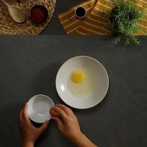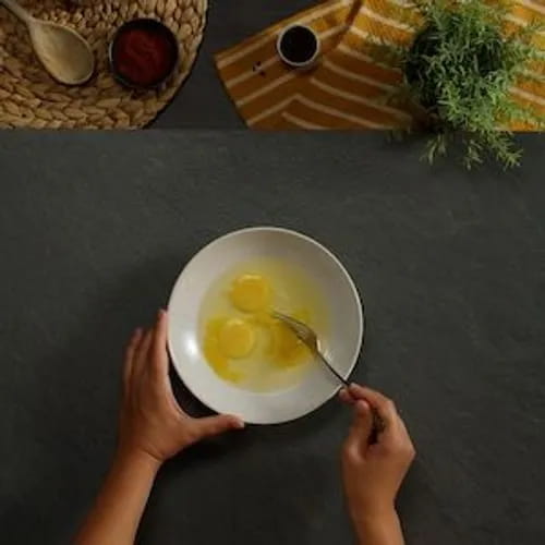 Passiamo alla marinatura delle ali di pollo. Rompiamo e sbattiamo delle uova in un piatto fondo, aggiungendo un pizzico di sale, una grattugiata di pepe nero, i due tipi di paprika e un po' di ketchup. Mescoliamo bene tutti gli ingredienti.
