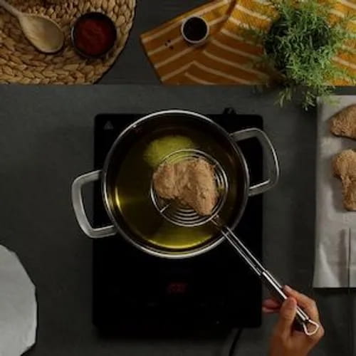 Procediamo con la frittura. In un tegame dai bordi alti, versiamo dell'olio di semi e portiamolo a una temperatura di 170°. Immergiamo le ali di pollo e friggiamole per circa 10 minuti o fino a quando non saranno ben dorate. Al termine della cottura, scoliamole su carta assorbente.
