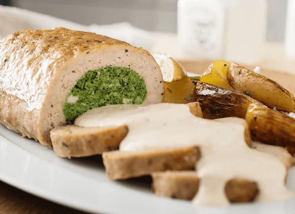 Ecco la ricetta completa del BonRoll agli spinaci con salsa tonnata e patate alle erbe!