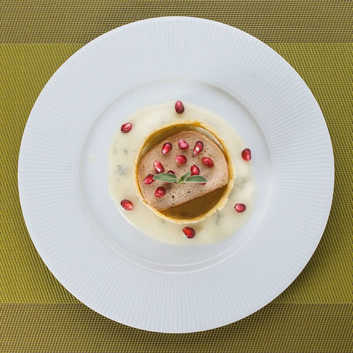 Nel frattempo, in un pentolino scaldate il latte, poi spegnete il fuoco e aggiungete i tocchetti di gorgonzola mescolando fino ad ottenere una salsa densa. Mettete la salsa di formaggio sul piatto da portata, aggiungete una fetta di BonRoll e la sua cialda.