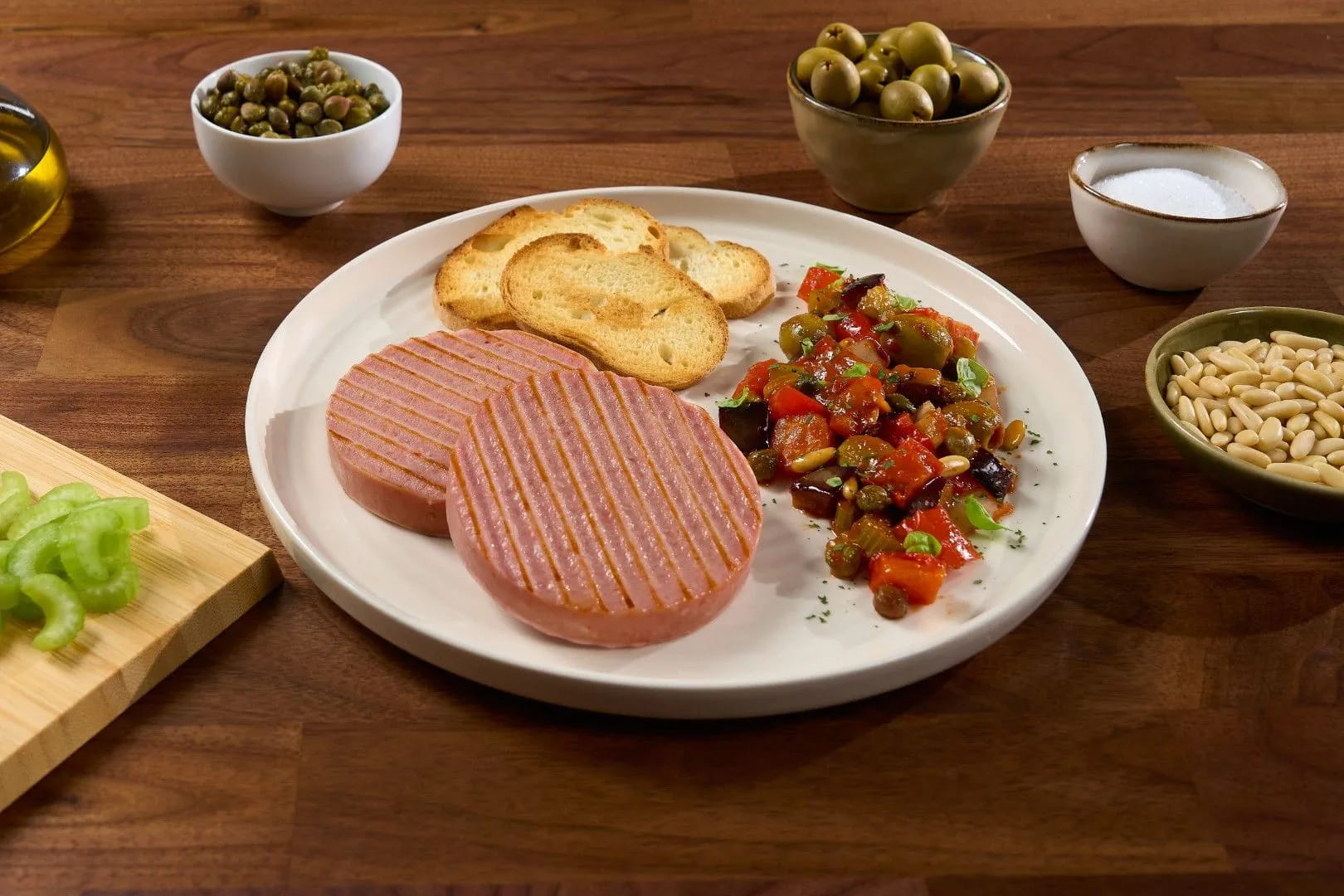 Un incontro di sapori decisi per un piatto che sa di tradizione mediterranea. I Burger di Pollo Wudy si uniscono a una caponata ricca di verdure di stagione, impreziosita da note agrodolci e aromi intensi.