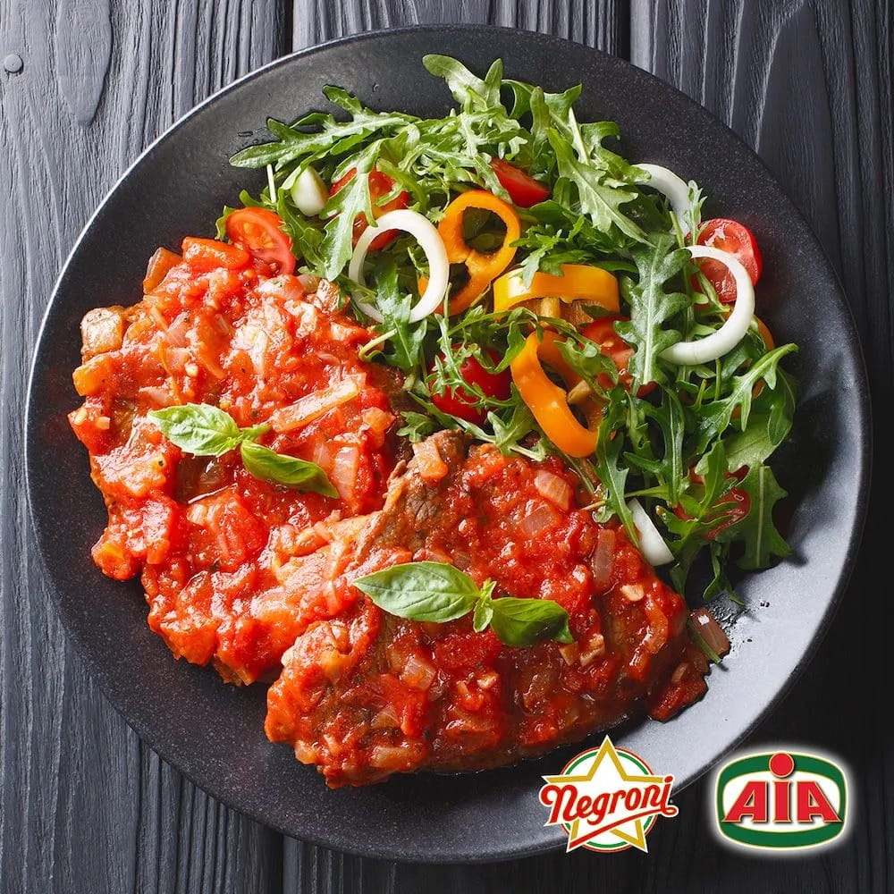 In questa variante della ricetta tradizionale, infatti, le Sottilissime di Petto di Pollo AIA vengono servite insieme ad una squisita salsa all’amatriciana, realizzata con saporiti cubetti di Pancetta Dolce Negroni, passata di pomodoro e pecorino romano. La delicatezza dell’olio d’oliva e il brio del peperoncino daranno poi quel tocco in più al piatto che si farà gustare fino all’ultimo boccone.