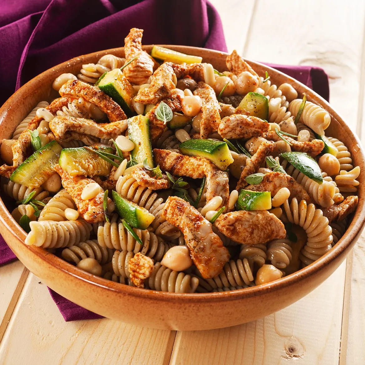 Ecco come preparare i fusilli con ceci e straccetti di tacchino!