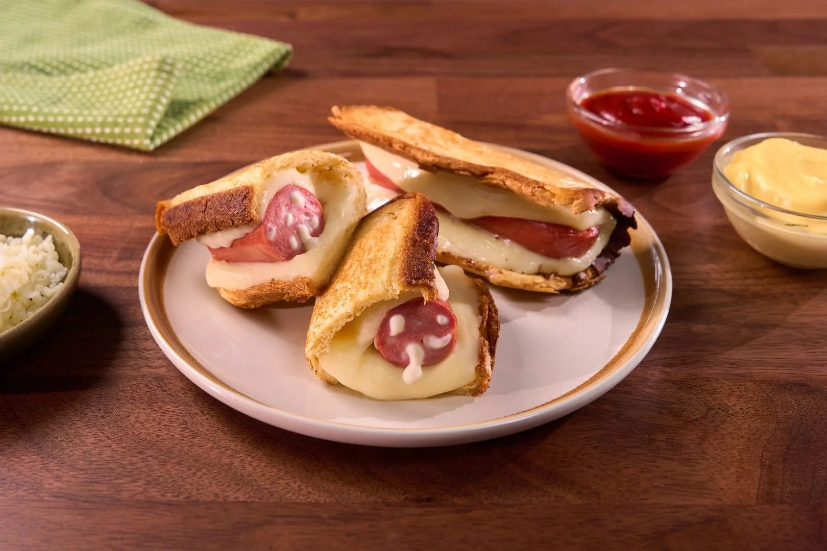 Un’idea golosa e pronta in pochi minuti, perfetta per uno spuntino irresistibile o un aperitivo casalingo da condividere. Il Grilled Cheese Hot Dog è un incrocio tra il classico toast filante e il più iconico degli street food americani. Il risultato? Uno scrigno croccante che racchiude un cuore caldo di Wudy Formaggio e formaggio fuso, da completare con salse a piacere per il massimo della bontà.