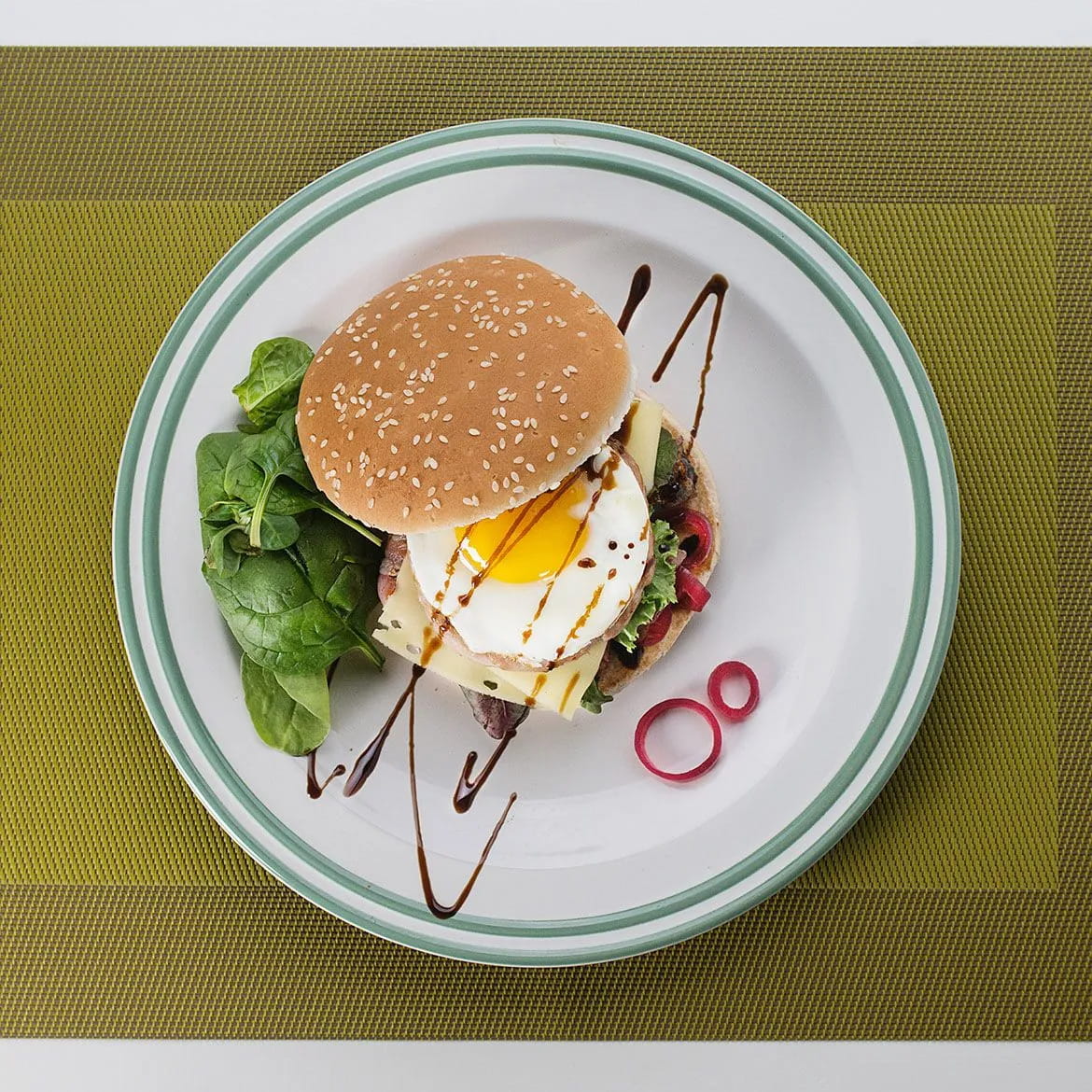 Tagliate il panino a metà e scaldate l’interno nella stessa padella di cottura delle prugne con la pancetta. Farcite il panino con l’insalata, le prugne, le cipolle, l’Hamburger di coniglio AIA, il formaggio, l’uovo e decorate con la glassa di aceto balsamico.