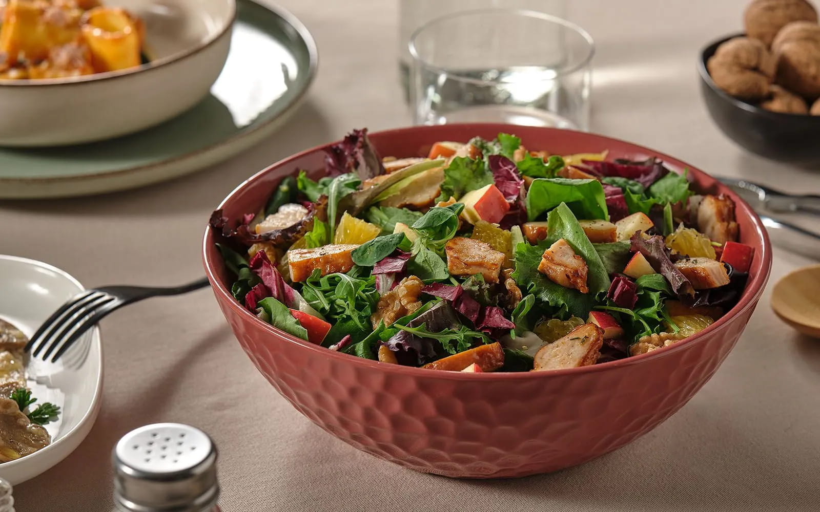 Leggera ma nutriente, la nostra insalata autunnale accompagna al pollo le note agrumate dell’arancia, la dolcezza della mela e la croccantezza delle noci. Una scelta bilanciata che, oltre al gusto, appaga l’olfatto e la vista con i suoi profumi e colori.