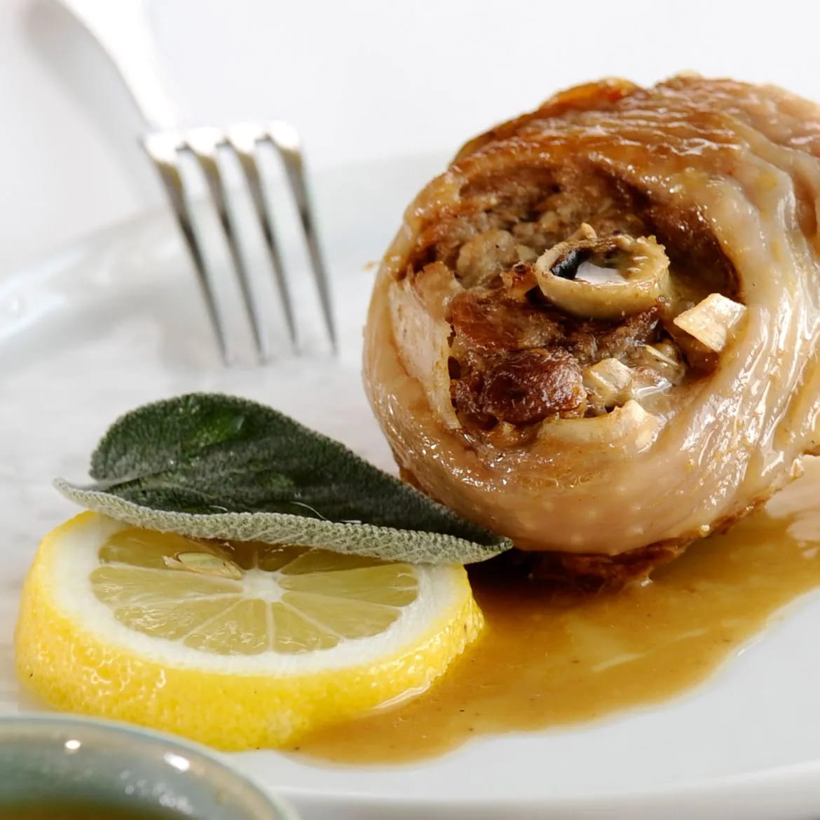 Servite gli ossibuchi con la salsina al limone ottenuta in cottura, con una fetta di limone decorativa e qualche fogliolina di salvia a piacere.