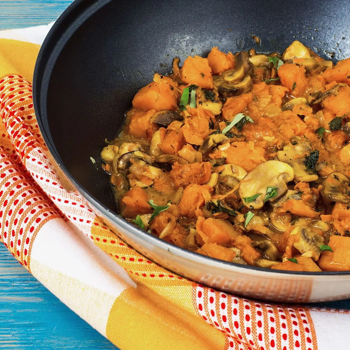 Padellata di salsiccia, funghi e zucca