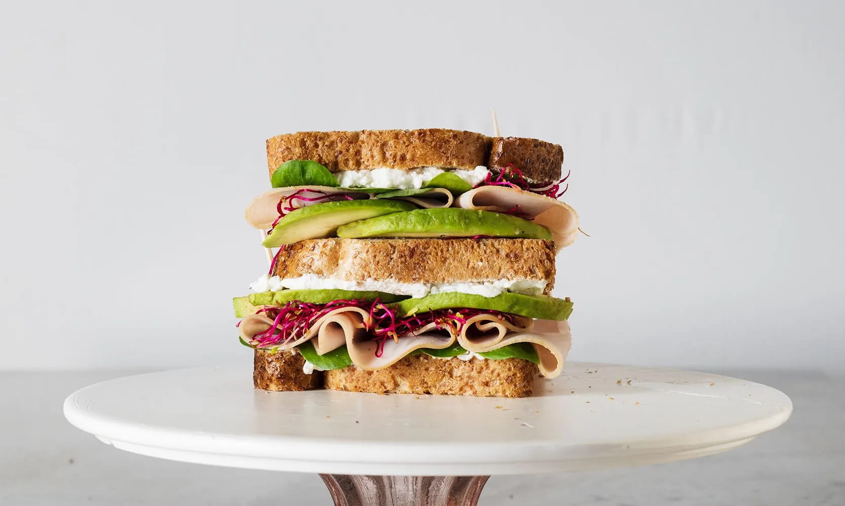 Facile e velocissima da preparare, ecco la ricetta del panino integrale a fette con ricotta, avocado, insalata, petto di tacchino, germogli di barbabietola!