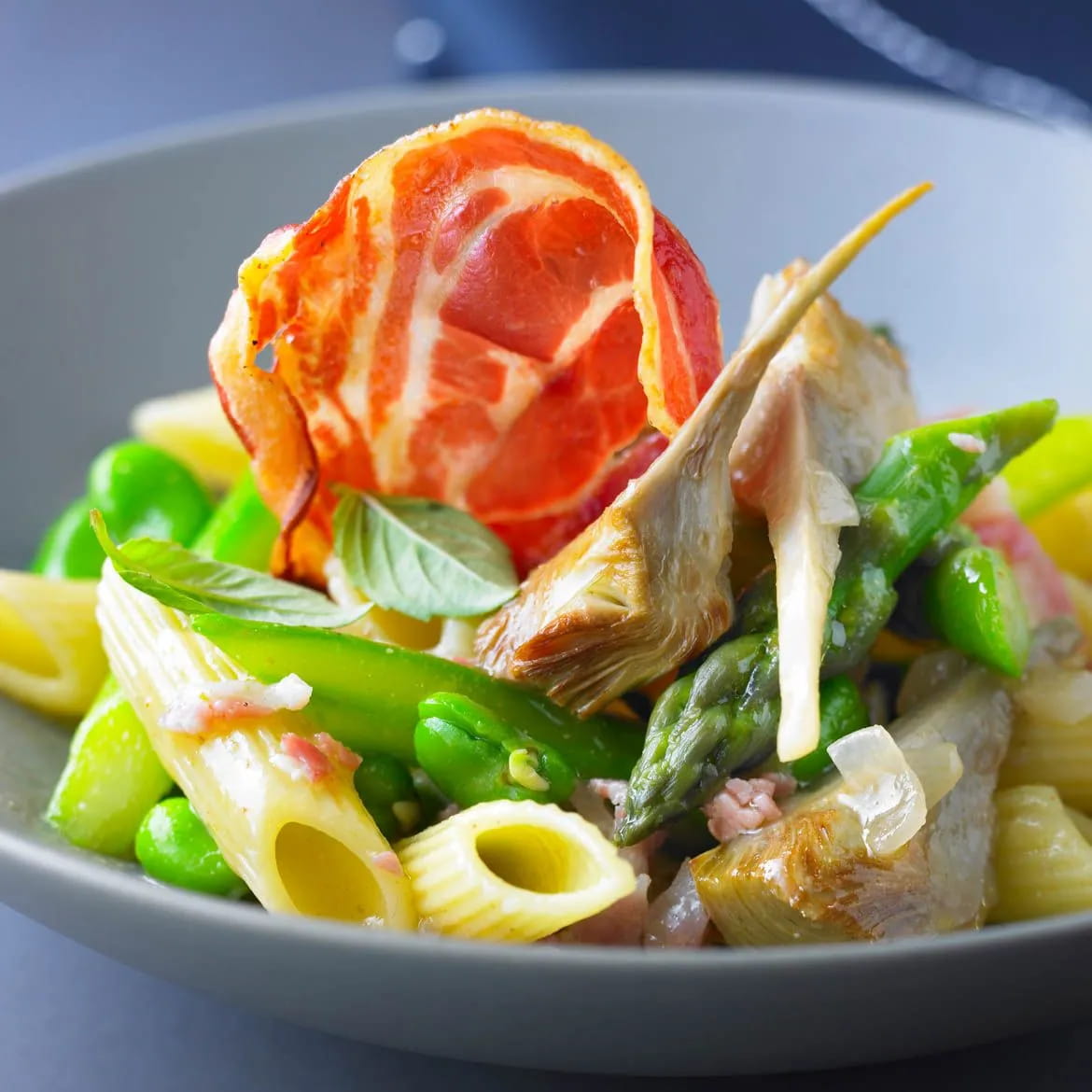Pasta con carciofi e pancetta