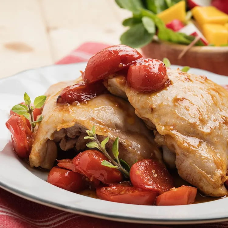 Portate a cottura i funghi; tritate il prezzemolo e sistematelo poi sui funghi cotti. Nella stessa padella della cottura dei funghi, fate rosolare le sovracosce con la loro marinata, sfumate con brodo o acqua e portate a cottura. Impiattate e servite. Buon appetito!