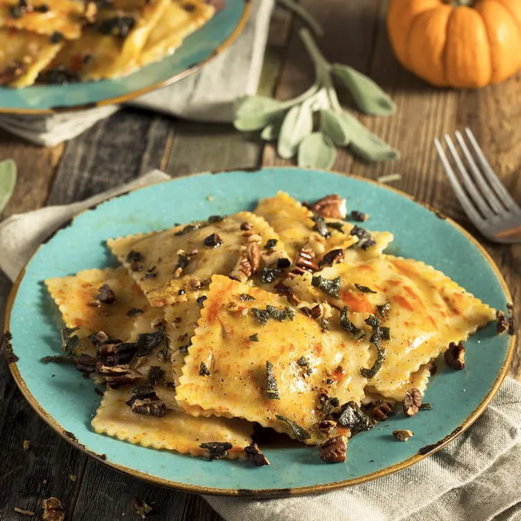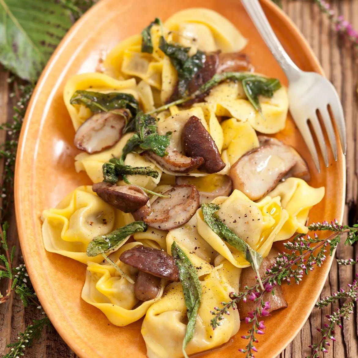 - Tortelloni ripieni di coniglio e patate con porcini e salvia